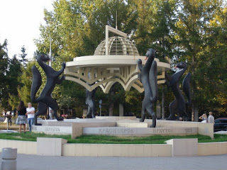 On the way home I stopped off near Lenin Square, and took a picture of this Compass monument in Novosibirsk. The heraldic animals are from the coat of arms of the city. There is one at each point of the compass. Around the base are the names of cities in Siberia. The message is “Novosibirsk is the centre of Siberia”.