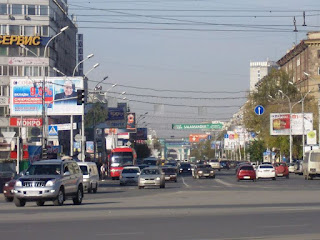After lunch, I set out on a expedition. I have been commissioned to buy a “Novosibirsk” Ice-Hockey jersey. Up until today, I had no luck but I finally succeeded. The expedition was to a part of town which I hadn’t visited before. It took me a one trolley-bus ride and a bus ride to get there. The stadium was a little non-descript, but it is an indoor sport. There was a banner advertising “wrestling”, but I’m not sure what sort of wrestling. It took me a little while to find the merchandise shop. It wasn’t marked at all well. And then the negotiations started. There were two men in the shop. Both were helpful, but neither spoke any English. My Russian has improved, but this was entirely new territory, and I don’t even know anything about ice-hockey (By the way, if a Russian refers to “Hockey”, they mean Ice-Hockey). They didn’t accept plastic, but they did direct me to a cash-machine. I wasn’t that hopeful, because I haven’t had very good luck with cash-machines, but I went and tried. We were in luck! I short while later, I left. Now the proud owner of a rather attractive Hockey Jersey (Front and Back). The journey home was a little bit of an adventure. I spotted a trolley-bus which said it was going to a suitable place. Then it took a turning I didn’t expect! After frantic map-reading, I decided I was going in the right direction. A little later, the bus turned onto a road that I knew and eventually I got off very close to the school. I actually had an easier journey coming home, than I did on the way out.