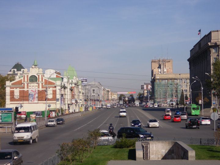 After lunch, I set out on a expedition. I have been commissioned to buy a “Novosibirsk” Ice-Hockey jersey. Up until today, I had no luck but I finally succeeded. The expedition was to a part of town which I hadn’t visited before. It took me a one trolley-bus ride and a bus ride to get there. The stadium was a little non-descript, but it is an indoor sport. There was a banner advertising “wrestling”, but I’m not sure what sort of wrestling. It took me a little while to find the merchandise shop. It wasn’t marked at all well. And then the negotiations started. There were two men in the shop. Both were helpful, but neither spoke any English. My Russian has improved, but this was entirely new territory, and I don’t even know anything about ice-hockey (By the way, if a Russian refers to “Hockey”, they mean Ice-Hockey). They didn’t accept plastic, but they did direct me to a cash-machine. I wasn’t that hopeful, because I haven’t had very good luck with cash-machines, but I went and tried. We were in luck! I short while later, I left. Now the proud owner of a rather attractive Hockey Jersey (Front and Back). The journey home was a little bit of an adventure. I spotted a trolley-bus which said it was going to a suitable place. Then it took a turning I didn’t expect! After frantic map-reading, I decided I was going in the right direction. A little later, the bus turned onto a road that I knew and eventually I got off very close to the school. I actually had an easier journey coming home, than I did on the way out.