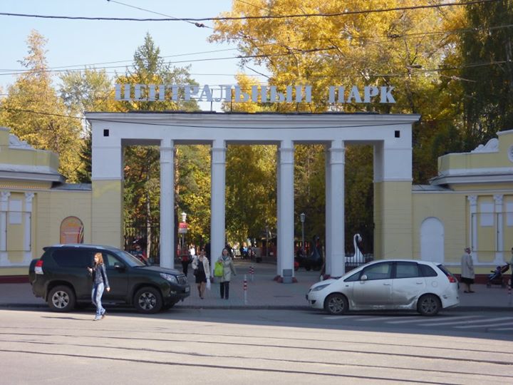 After lunch I went for a walk in “Central Park” (in Novosibirsk, not New York!). It’s a really attractive place, with fairground attractions, rides for the kids, a stage for bands. From this view along one of the paths, you can see how sunny it was. It was warm but you can also see the leaves are changing colour for Autumn, and they have started fall.