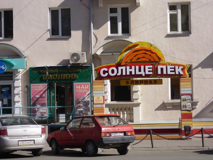 I was looking for a place to have lunch. This is it “Sunny Bake”: salad and a cutlet and green tea and bliny. If you get the opportunity, you must try Russian blini. They are pancakes or crepes. Excellent! Mine was served with melted butter and smetana (sour cream) but there are a wide range of fillings both sweet and savoury, including smoked salmon, mushrooms, sugar and chocolate (not all at the same time, I hope). I ordered it all with words, not just point and shoot.